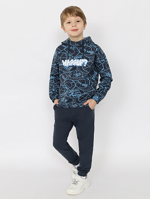 Костюм для мальчика (толстовка, брюки) темно-серый-голубой