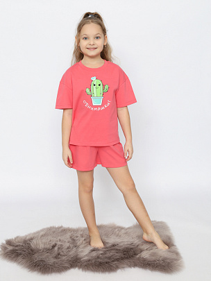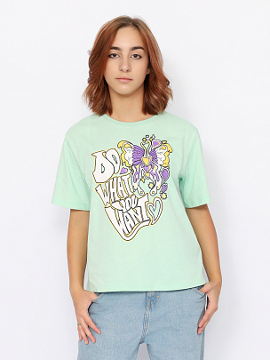 футболка с короткими рукавами. горловина круглая, обработана притачной бейкой из основного полотна. перед декорирован принтом.