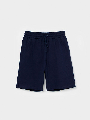 Шорты для мальчика из кулирной глади повышенной плотности. Верх шорт обработан притачным поясом из основного полотна, внутрь вставлена резинка и шнурок. На передних половинках расположен карман. Нижняя часть переда декорирована принтом.
