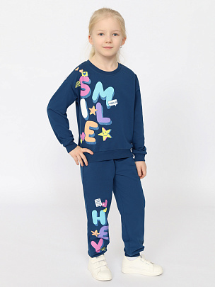 Комплект для девочки (футболка, брюки модель "легинсы") темно-синий