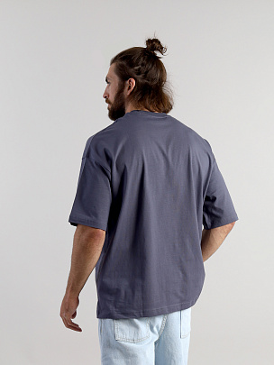 Объемная футболка оверсайз из кулирки повышенной плотности длиной до бедер. Рукав до локтя. Круглая горловина обработана узкой притачной обтачкой из рибаны с эластаном. Горловина декорирована принтом "возврата нет".