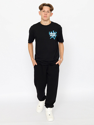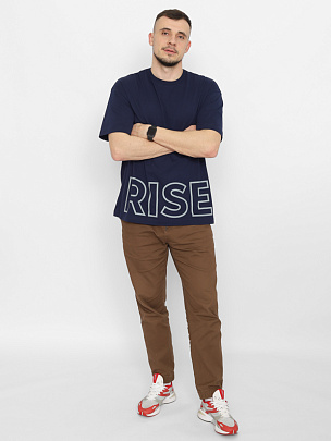 Футболка прямого силуэта длиной до бедер. Короткий рукав. Круглая горловина обработана узкой притачной обтачкой из рибаны с эластаном. Полочка декорирована принтом и текстильной нашивкой "ясное будущее естественное и аутентичное".