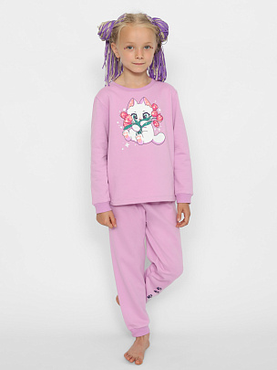 Пижама комбинированная из футболки и шорт. Футболка оверсайз с коротким рукавом выполнена из гладкокрашеного полотна. Горловина обработана притачной бейкой из рибаны с лайкрой. Перед оформлен принтом. Шорты свободного покроя длиной до середины бедра выполнены из набивного полотна дополнительного цвета. Цельнокроенный пояс обработан плоским швом вподгибку с одновременным прокладыванием резинки.