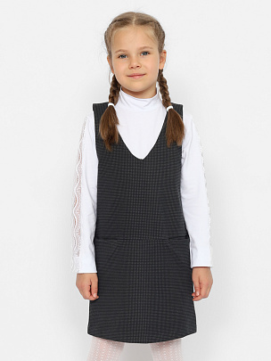 Джемпер для мальчика со спущеным плечом. Рукав втачной с манжетами. Боковые швы джемпера смещены на полочку, низ джемпера обработан поясом с разрезами. Воротник-стойка отложной. Манжеты и пояс выполнены из основного материала.