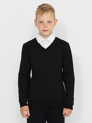 Джемпер с длинными втачными рукавами и притачными манжетами. Воротник, манжеты и пояс выполнены из полотна с эластаном. Перед декорирован принтом "Виртуальный мир без границ".