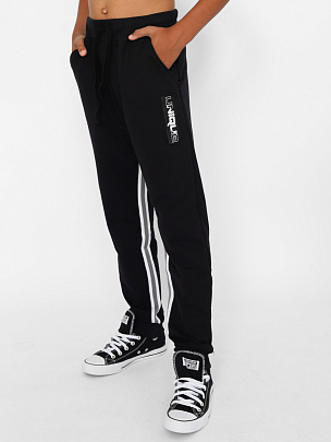 Джемпер с длинным втачным рукавом. Низ изделия и рукава обработаны поясом и манжетами из полотна с эластаном. Рукава декорированы вязаными лампасами. Перед декорирован принтом с эффектом "Высокая база" "УНИКАЛЬНЫЙ". Брюки с притачным поясом и манжетами. В пояс вставлена резинка и функциональный шнур. Пояс и манжеты выполнены из полотна с эластаном. На передней части брюк расположены карманы с подрезным бочком. Шаговые швы декорированы вязаным лампасом. Передняя половинка брюк декорирована принтом с эффектом "Высокая база" "УНИКАЛЬНЫЙ".