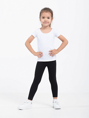 Легинсы для девочки без боковых швов и манжет. Верхний срез обработан швом вподгибку, с предварительно притачанной резинкой.
