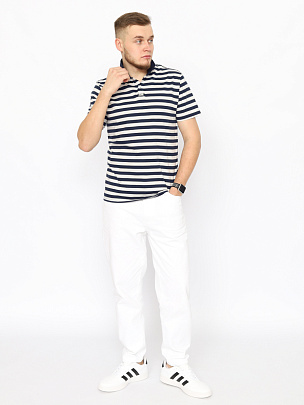 Рубашка-поло мужская прямого силуэта с коротким рукавом. Вязаный воротник, застежка на брендированные пуговицы. Декорирована силиконовой нашивкой по низу планки.