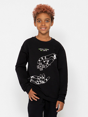 Толстовка мужская со спущенными плечами. Манжеты, воротник и пояс из эластичной рибаны.