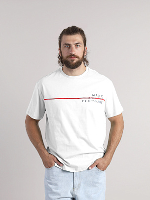 Футболка мужская с коротким рукавом. Вырез горловины круглый, обработан притачной бейкой из рибаны с эластаном.